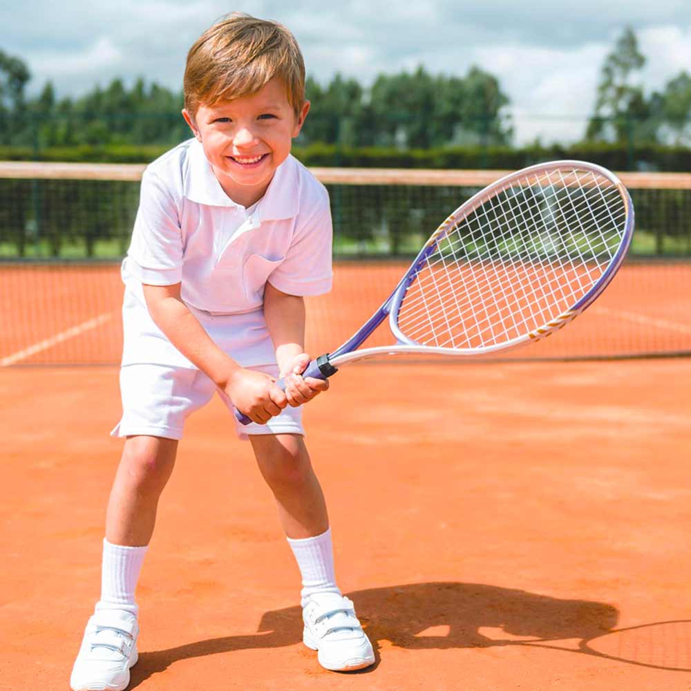 Bequeme Sportkleidung und Tennisschuhe sind ideal. Einen Tennisschläger kannst du dir entweder günstig als Einsteigermodell kaufen oder ganz unkompliziert bei uns vor Ort ausleihen.
